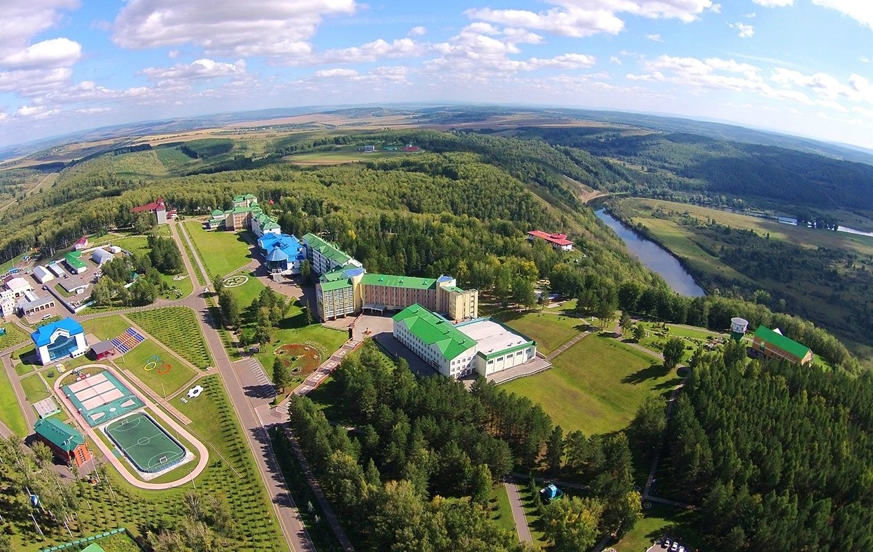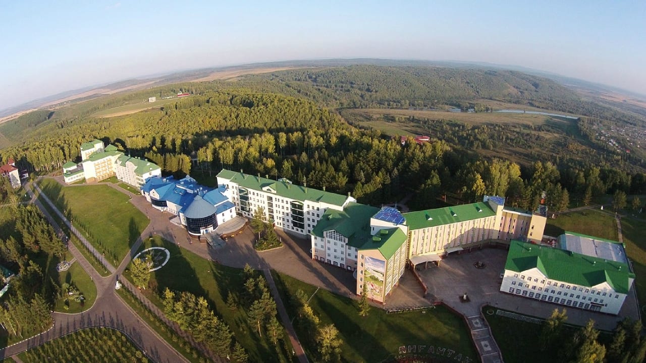 Бальнеологический курорт «Янган-Тау» расположен в восточной части Башкирии, на берегу р. Юрюзань, на вершине одноименной «Горящей горы». Это уникальное место, известное целебными свойствами геотермальных паров, выходящих из горных расщелин. Курорт удален от г. Уфа на 230 км и на 270 км от г. Челябинска. В 1 км – конно-спортивный комплекс и ипподром, чуть дальше – цинковый источник. В 3 км – источник минеральной воды «Кургазак». «Янган-Тау» сегодня – это крупнейшая здравница региона с богатой инфраструктурой, разнообразным номерным фондом, высокоэффективным лечением, качественным сервисом и неизменным гостеприимством. Территория курорта со всех сторон окружена лесом и составляет 125 га. Естественную красоту мест дополняет продуманный ландшафт: цветы и зоны отдыха, ухоженные дорожки, фонтан, скульптурные формы. Курорт представлен комплексом из 7 спальных корпусов (№1-6 – 5-этажные, №7 – 2-этажный), 6 коттеджей, паровой, водо- и суховоздушной лечебниц, питьевого бювета, лечебно-диагностического отделения с грязелечебницей и СПА-центром «Секрет Клеопатры», оздоровительного и туристического комплексов как самостоятельных структур, центра досуга, спортивного и банного блоков, детской площадки, магазинов, смотровой площадки. Корпуса №1-5 соединены между собой, с медицинским блоком и центром досуга. Корпус 6 стоит отдельно, чуть в стороне. Все они оснащены лифтом. 2-этажный корпус 7 находится на окраине, напротив автостанции и рядом с торговым комплексом. Четыре 1-этажных коттеджа расположены напротив корпуса 5, один – возле питьевого бювета, и еще 1 – неподалеку от 7 корпуса. Размещение гостей производится в уютных номерах разного уровня комфортности. В каждом номере санузел с ванной/душем, ТВ, холодильник, сейф, фен. Питание сервируется в 3 залах, работающих по шведской линии: на 1 этаже Центра досуга, на 2 этаже в здании между корпусами 4,5, и в корпусе 6. В меню блюда русской, европейской и национальной кухонь, приготовленные из продуктов собственного производства. Также к услугам гостей ресторан «Урал» в Центре досуга, несколько кафе и баров. Работает сервис доставки пиццы и суши. На курорте предусмотрены возможности для спортивного, культурного и творческого досуга каждой возрастной группы. Любители спорта оценят круглогодичный многофункциональный стадион из 2 полей для летних и зимних игр и забав. В прокате большой выбор инвентаря, включая сложную технику. В зимнее время действует горнолыжный центр «Беркут». Это 3 лыжных трассы с бугельным подъемником, трасса для тюбингов и беговая лыжня. Редкий санаторий имеет свою художественную галерею. В «Янган-Тау» выставлены картины известных художников России. В 4 корпусе создан музей «Каравелла», где собрана большая коллекция морской фауны. В зимнем саду представлены тропические растения, обитают птицы, черепахи, экзотические рыбки. Ежегодно летом на базе курорта праздника Сабантуя – фестиваля творчества, спорта и народных гуляний. Санаторий располагает собственным эстрадно-фольклорным коллективом, являющимся лауреатом различных конкурсов. Для детей оборудован яркий игровой городок, летом устанавливается надувной и аэробатут, открыта детская комната с воспитателем, ежедневно проводятся анимационные программы, дискотеки и спектакли. Курорт предоставляет комплексное восстановительное 