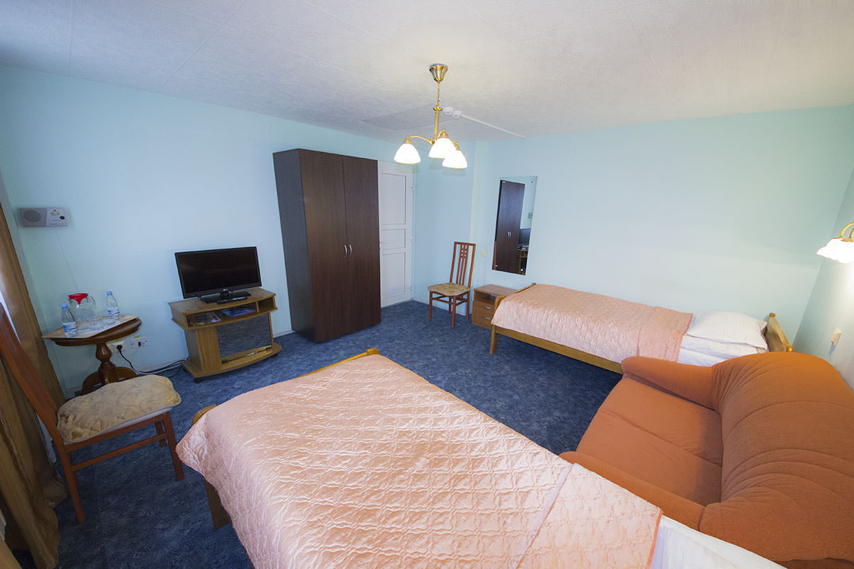 Площадь номера - 26 кв.м. 2 осн. места. 2 доп. места. Мебель: вешалка, зеркало, ковровое покрытие, кровати односпальные, прикроватные тумбочки, стол, стулья, шкаф. Оборудование: мини-холодильник, пляжные полотенца, сейф, телевизор, телефон, чайный набор посуды, электрочайник. Санузел: с душевой кабиной, туалетные принадлежности, фен. Сервис: смена полотенец, смена постельного белья, уборка номера.